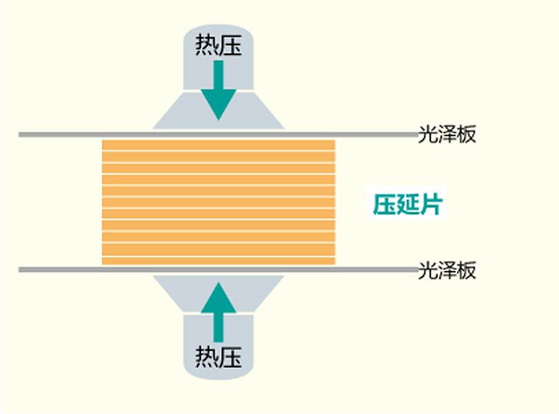 堆积0.5mm厚度的压延片,施压和热让其成型为板材。
